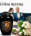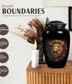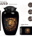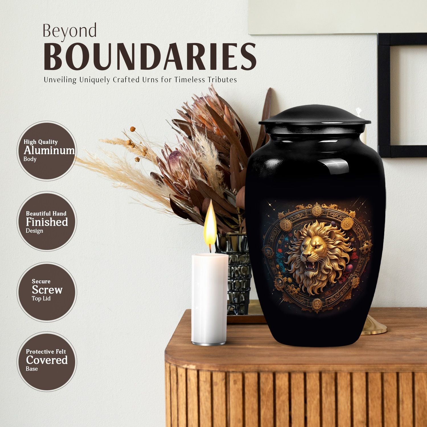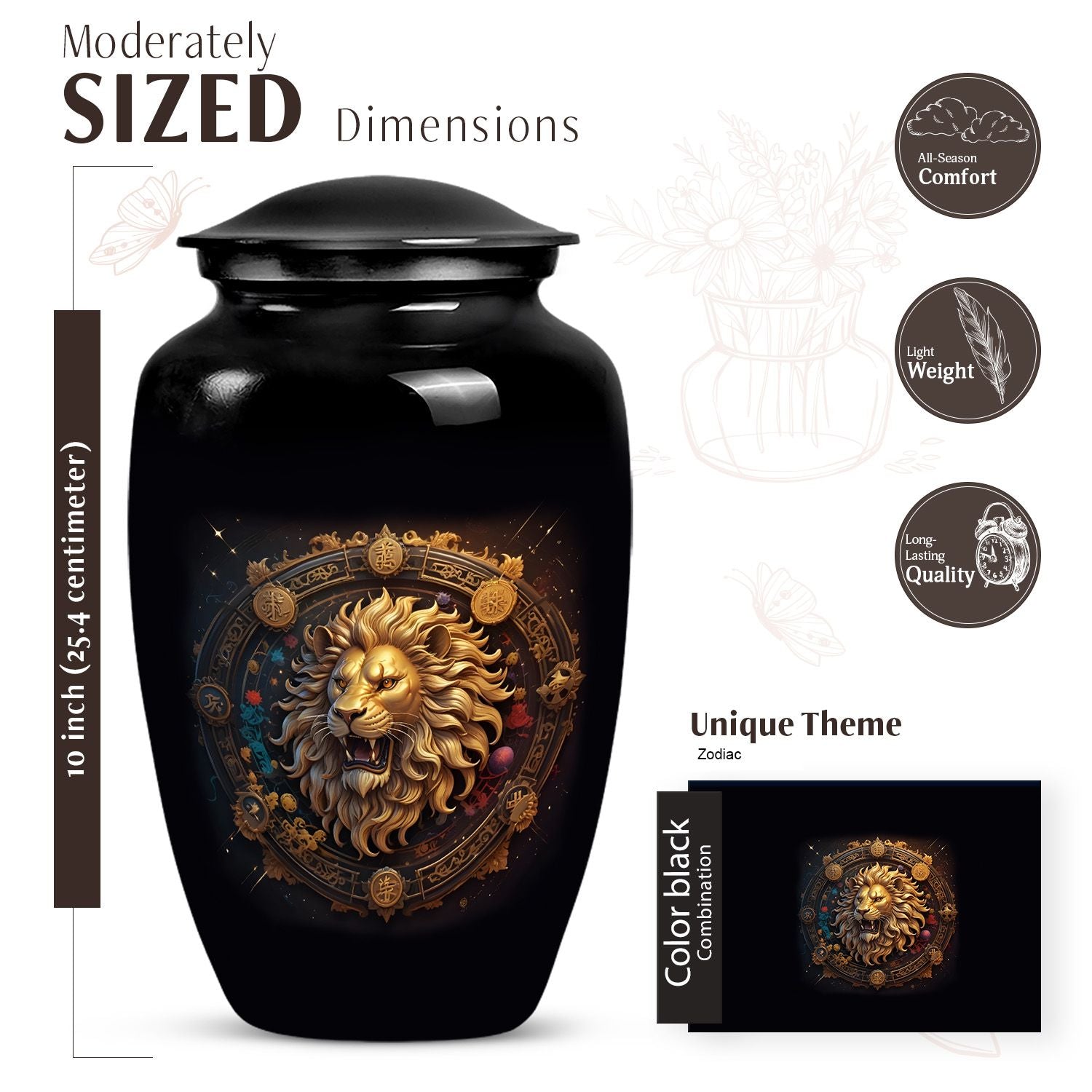 Immerse yourself into the celestial comfort with our Zodiac-themed Aluminium Large Urn. Measuring a full 10 inches tall and weighing a modest 3.3 pounds, this adult burial urn for ashes combines elegance and longevity in a compact package. The urn accommodates up to 200 cubic inches of ashes, ample for an adult, and emanates a charming timeless aura. The distinct Zodiac theme not only adds a unique personality to this cremation urn but also serves as a sublime reminder of the eternal cosmic cycle we all are part of. The urn comes with a plush velvet pouch, ensuring safe containment and easy transportation of your beloved one's ashes. Personalize your urn with engraved names, making it an exclusive memorial for your loved one. Whether you're grieving a loss or preparing for the inevitable, our Zodiac urn offers a beautiful solution for your adult burial and memorial needs.