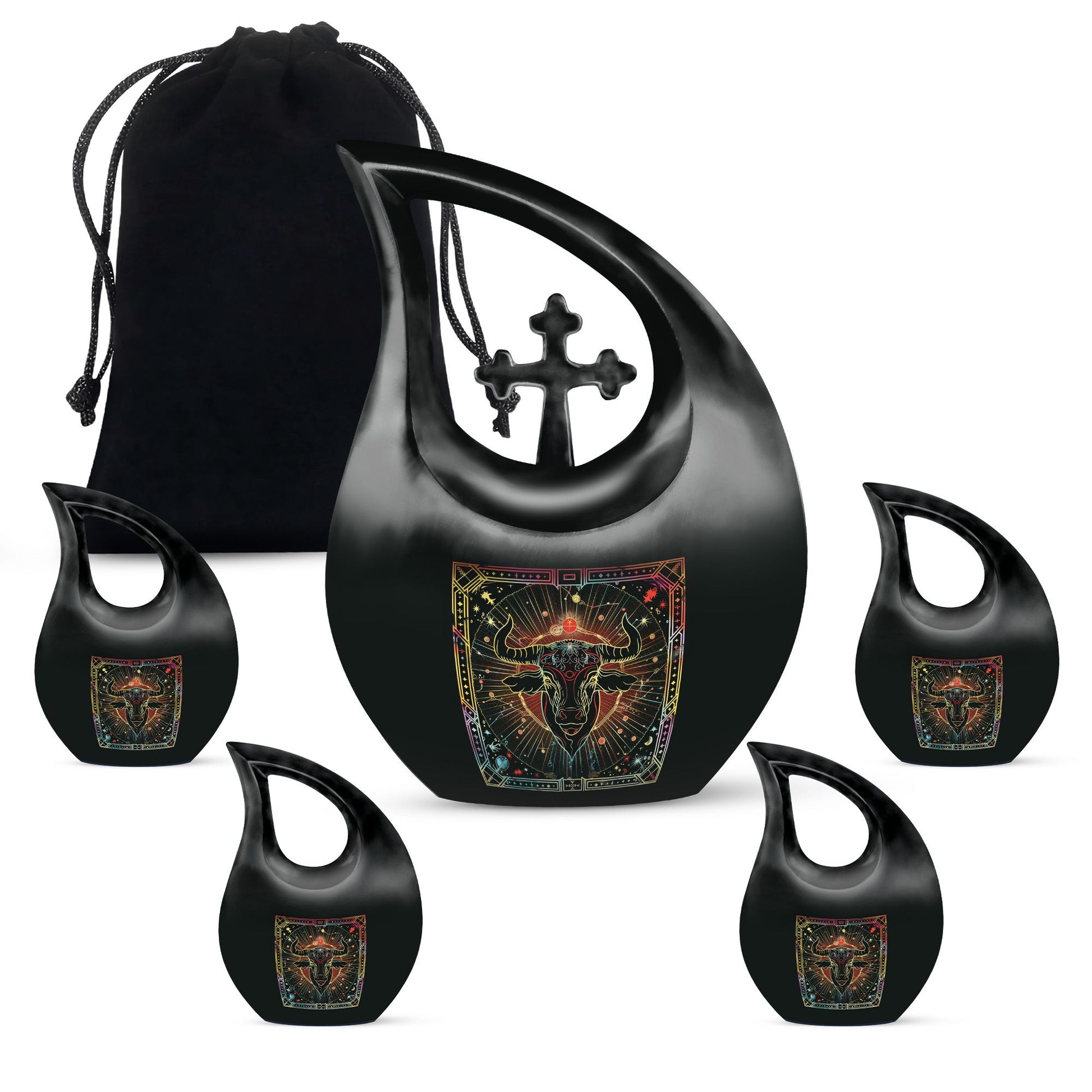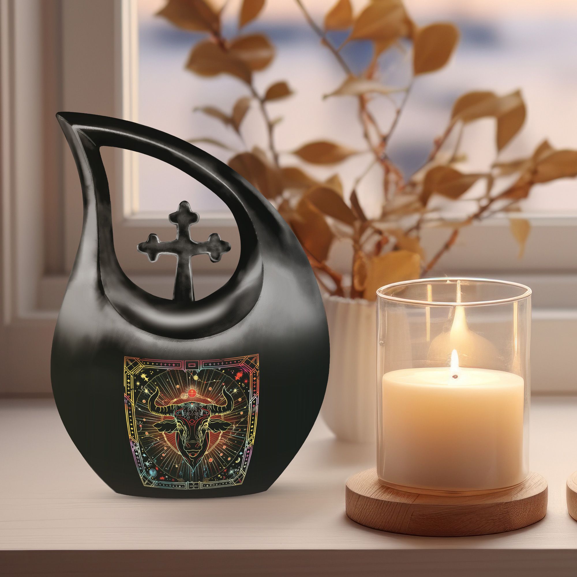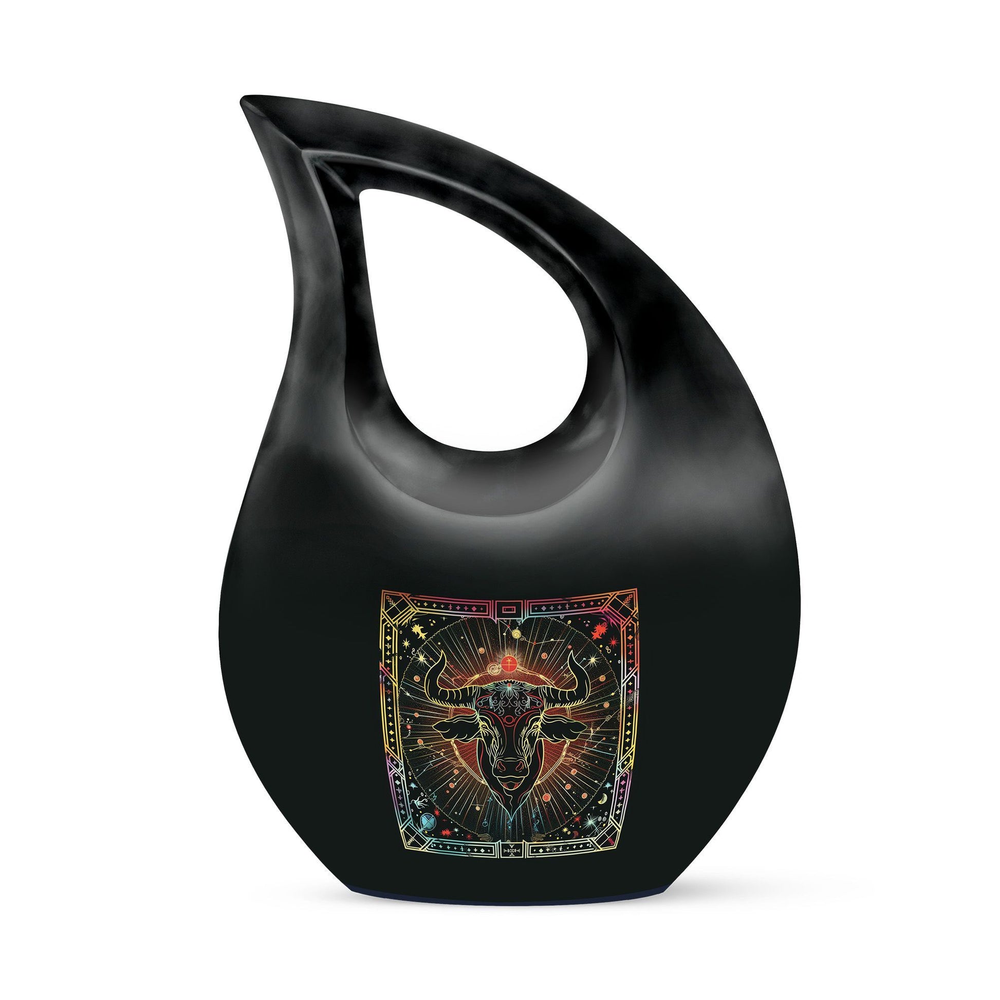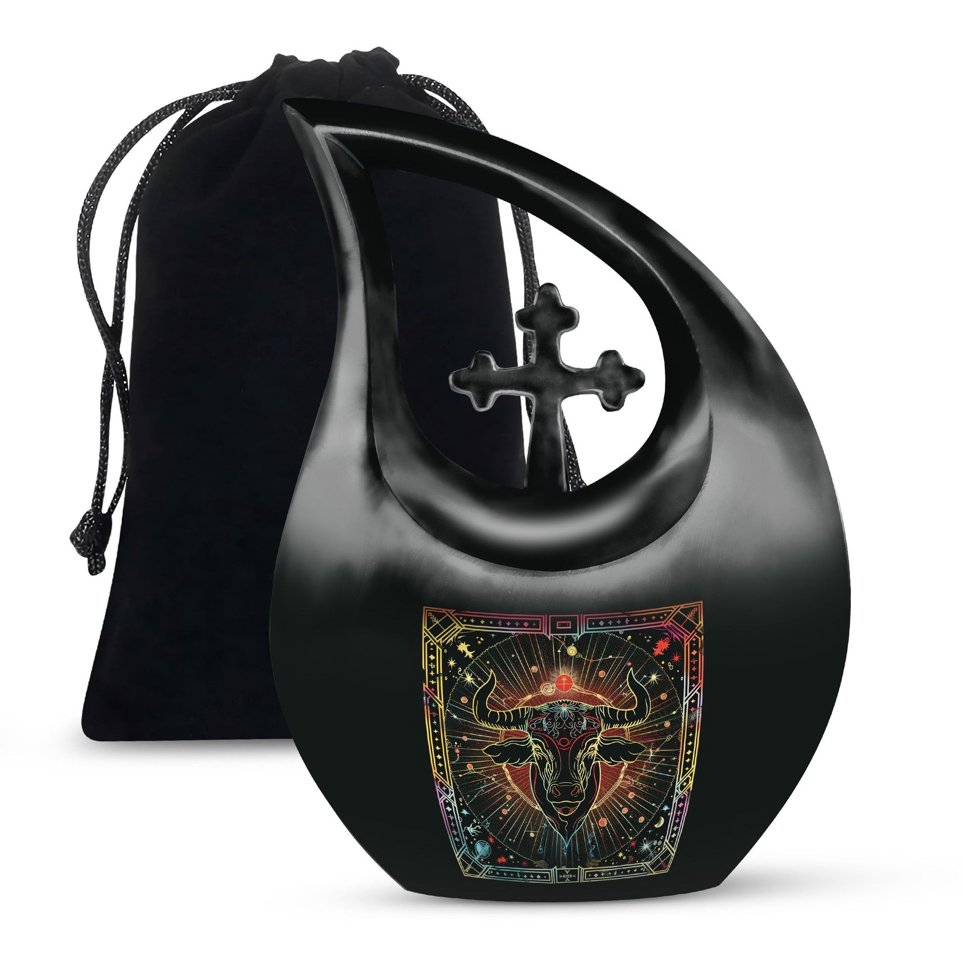 Cherish the memory of your loved one with our Zodiac Themed Cross Drop Urn, artfully crafted to carry a powerful emotional resonance. A Large Urn, with dimensions of 10 inches in height and a weight of 3.3 pounds, it can accommodate a capacity of 200 cubic inches. This urn is designed to be not only elegant but durable, made of long-lasting Aluminium material. Included in the package is a velvet pouch for the containment of ashes, ensuring a dignified and safe space. Personalize and customize this one-of-a-kind urn with engraved names, making it a unique and meaningful memento of your loved one. Apt for 'Affordable Cremation and Burial', this urn can also serve as a beautiful 'Ashes Keepsake' or a 'Cremation Keepsake'. Display this stunning urn as a heartfelt tribute and keep your cherished memories alive. Perfect for those seeking 'memorial urns' or 'urns for cremation ashes', our Zodiac Urn is sure to immerse you in soothing comfort and peace every time you glance at it.