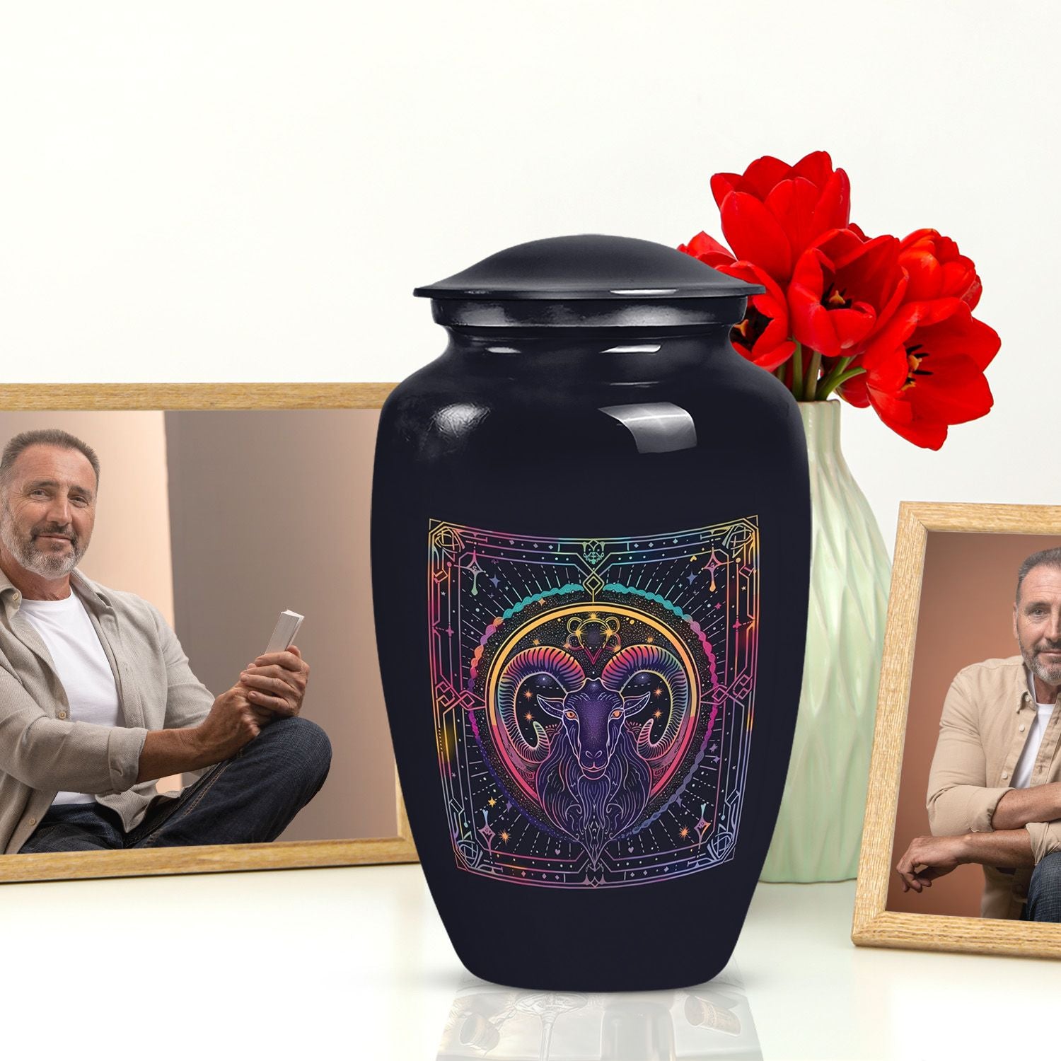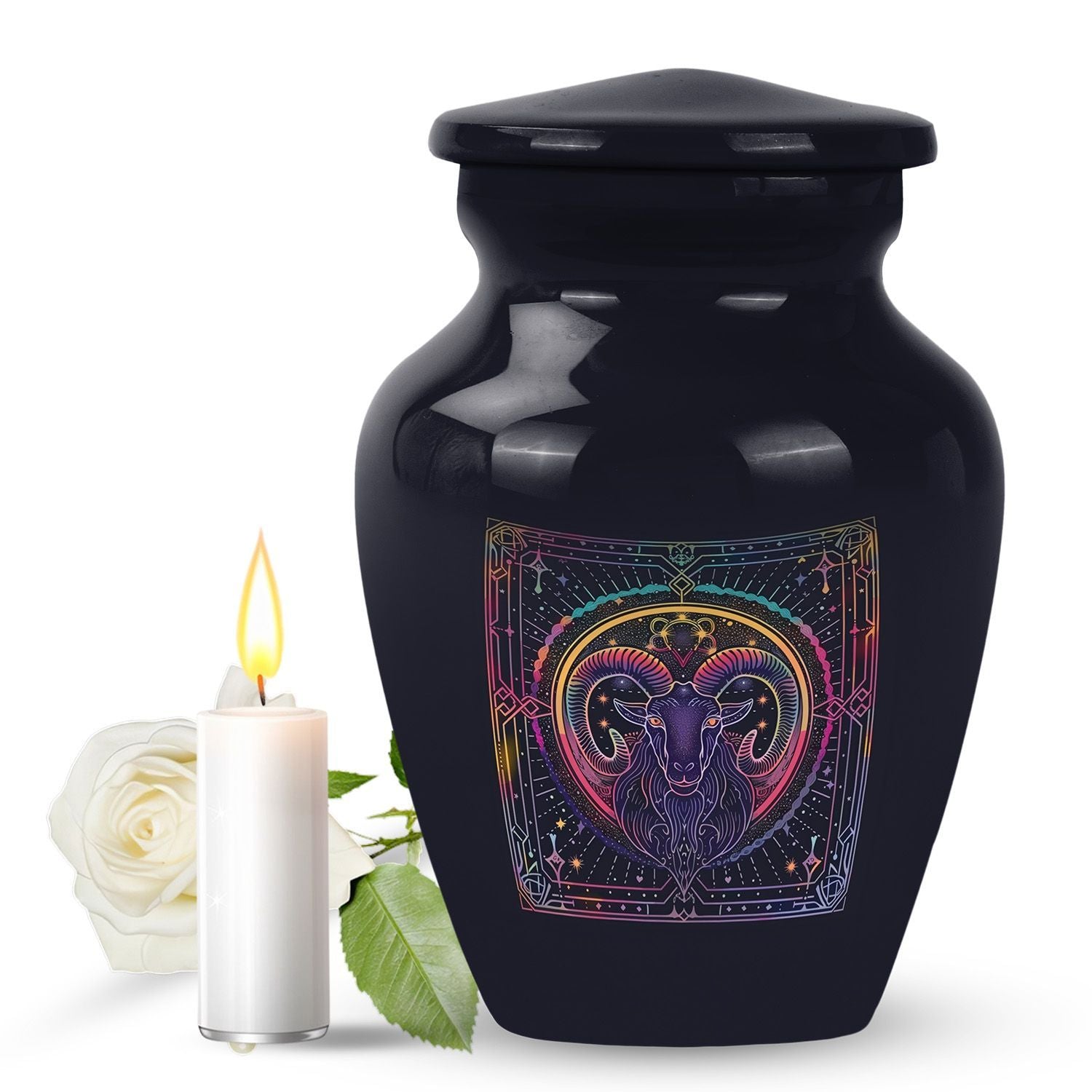Embark on a spiritual connection with this large-sized, Abstract-themed Zodiac Urn. This elegant cremation urn exhibits an ageless aluminium build, showcasing an ironic blend of durability and tenderness, symbolic in its purpose for the last rites. With a weight capacity of 3.3 pounds and measurements attaining 10 inches in height, this urn comfortably holds 200 cubic inches of human ashes. To add a personal touch, engrave the names of your loved ones, making it a heartfelt symbol of their eternal presence. Specially designed for the ceremonial use, this funeral urn also includes a gentle velvet pouch. This pouch serves as a soft containment for the remains, adding yet another considerate detail to this memorial urn. Unusual in essence yet traditional in purpose, this visionary piece offers a unique way to preserve those timeless stone urns for lasting memories. While its details sing a song of beautiful simplicity, its understated grandeur pays perfect homage to your lost loved ones.