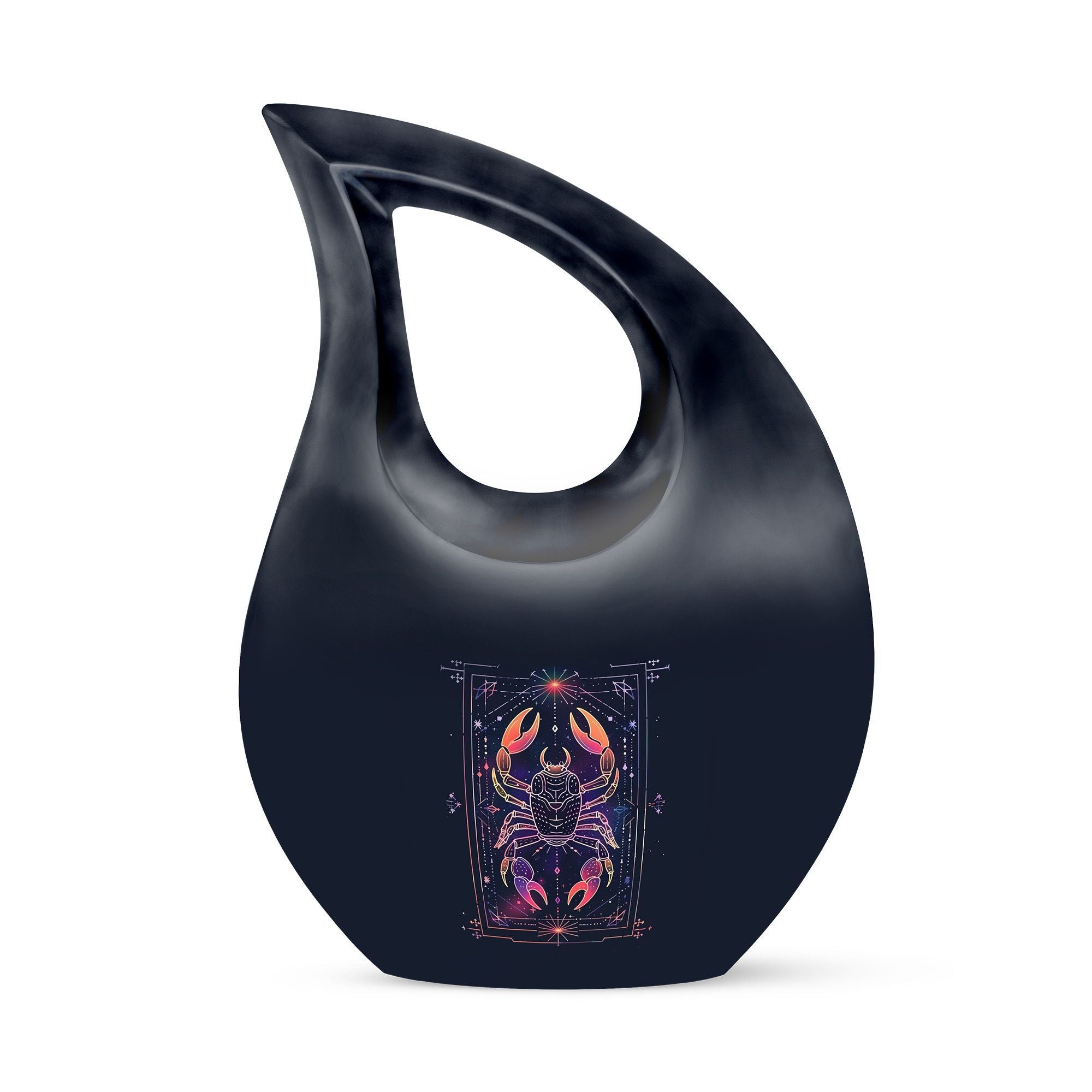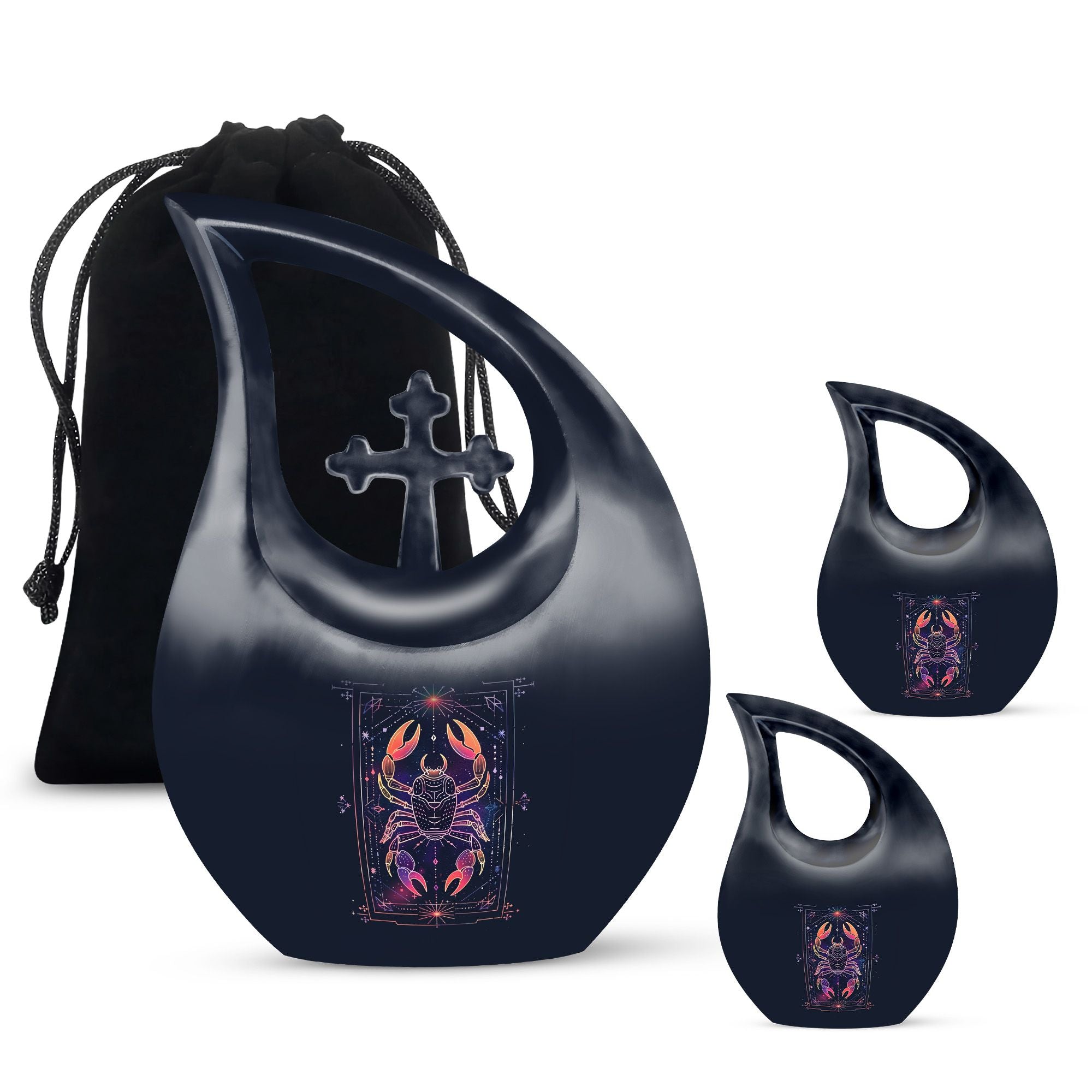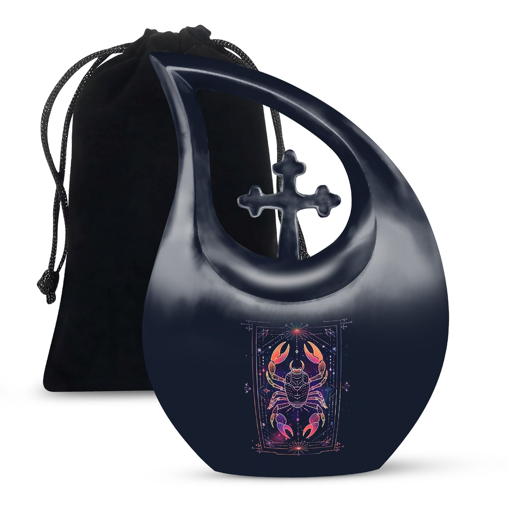Showcase your tranquil tribute to your loved ones with our Zodiac Cross Drop Large Urn. This 10-inch memorial urn, showcasing an alluring zodiac theme, is suitable for adults and seniors seeking unique, spiritual ceremony supplies. Crafted meticulously from high-quality aluminium, the urn encompasses a volumetric capacity of 200 cubic inches. Despite its large size, the urn has a comfortable weight of only 3.3 pounds. The prominence of the urn is further amplified with a Cross Drop design, imbuing an aura of spiritual reverence and remembrance. Additionally, the urn offers a personal touch, providing an option to engrave names. Each urn comes with a velvet pouch, safeguarding the containment of ashes. Radiating an eternal celestial charm, our urn is just not an artefact, but a vessel of cherished reminiscences. Suitable as garden urns for ashes, this can be a commemorative choice for lasting memories. Well-suited for terms like 'Zodiac Urn', 'Personalized Urns For Ashes', 'Cremation Urns', and 'Burial Urns' when sought.