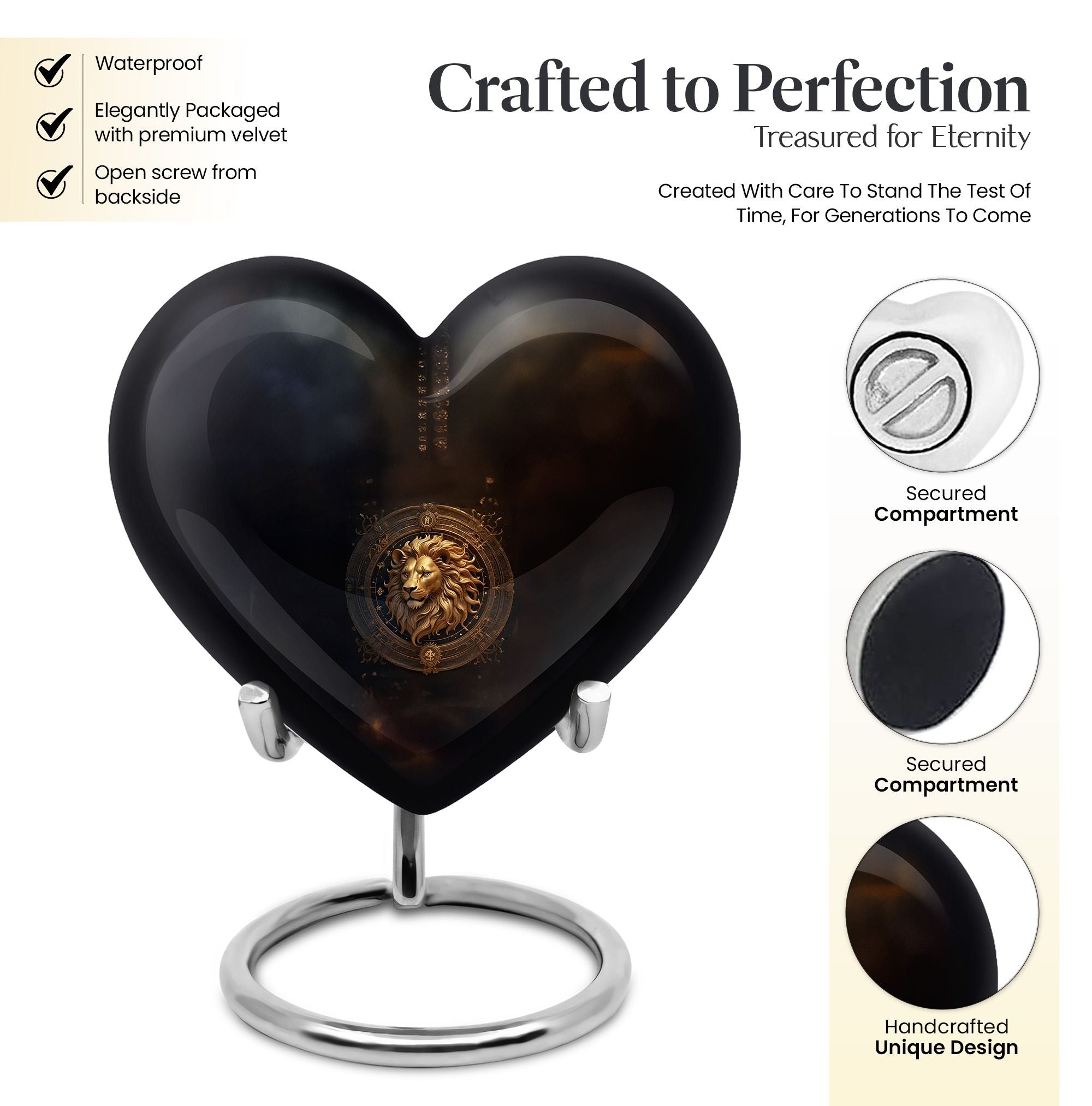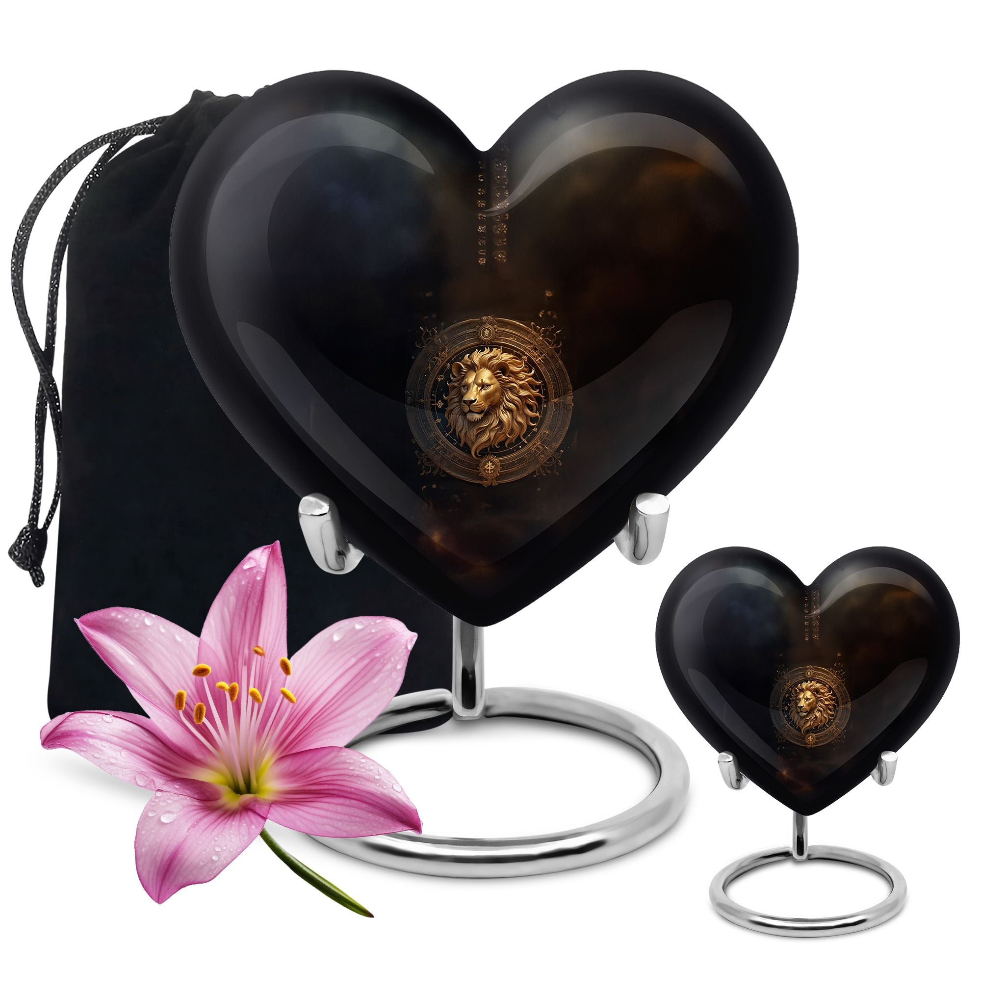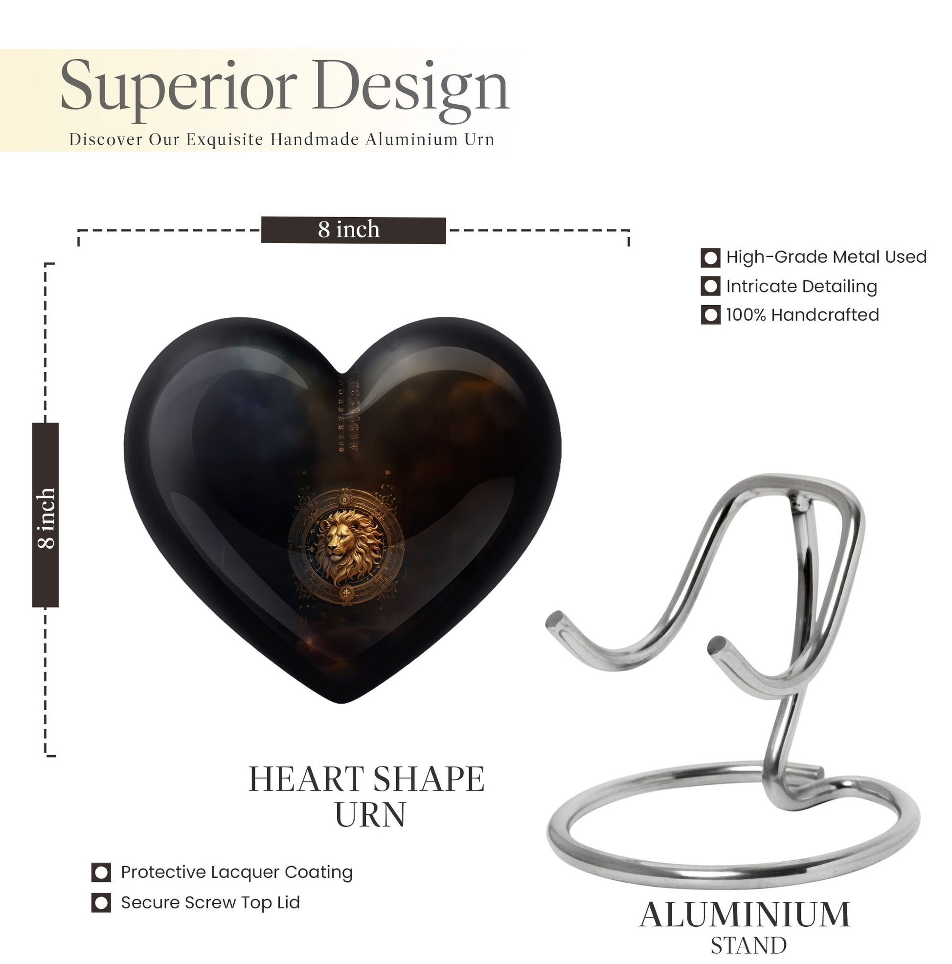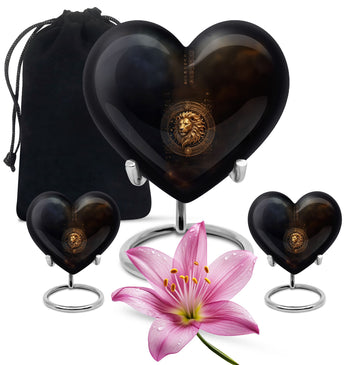Embrace the cosmic beauty of our Zodiac-themed Heart Urn, a heavenly choice among memorial urns. This 10-inch Zodiac Urn, crafted meticulously from high-quality aluminum, is not just an urn but a heartfelt tribute to those you miss. Weighing a modest 3.3 pounds and possessing large dimensions of 10 inches in height, this urn is sturdy yet exudes an ethereal charm. With a capacity to hold up to 200 cubic inches of ashes, it is ideal for adults. This large urn infuses a personalized touch, allowing you to etch engraved names on it. Moreover, the package comprises a velvet pouch, perfect for safe containment and preservation of the ashes. Perfectly suited for those in search of opaque 'cremation personalized urns for human ashes adult' or 'burial cremation urn'. Dive into moments of reminiscence with this unique Zodiac Heart Urn, a timeless keepsake that beautifully memorializes your loved one.