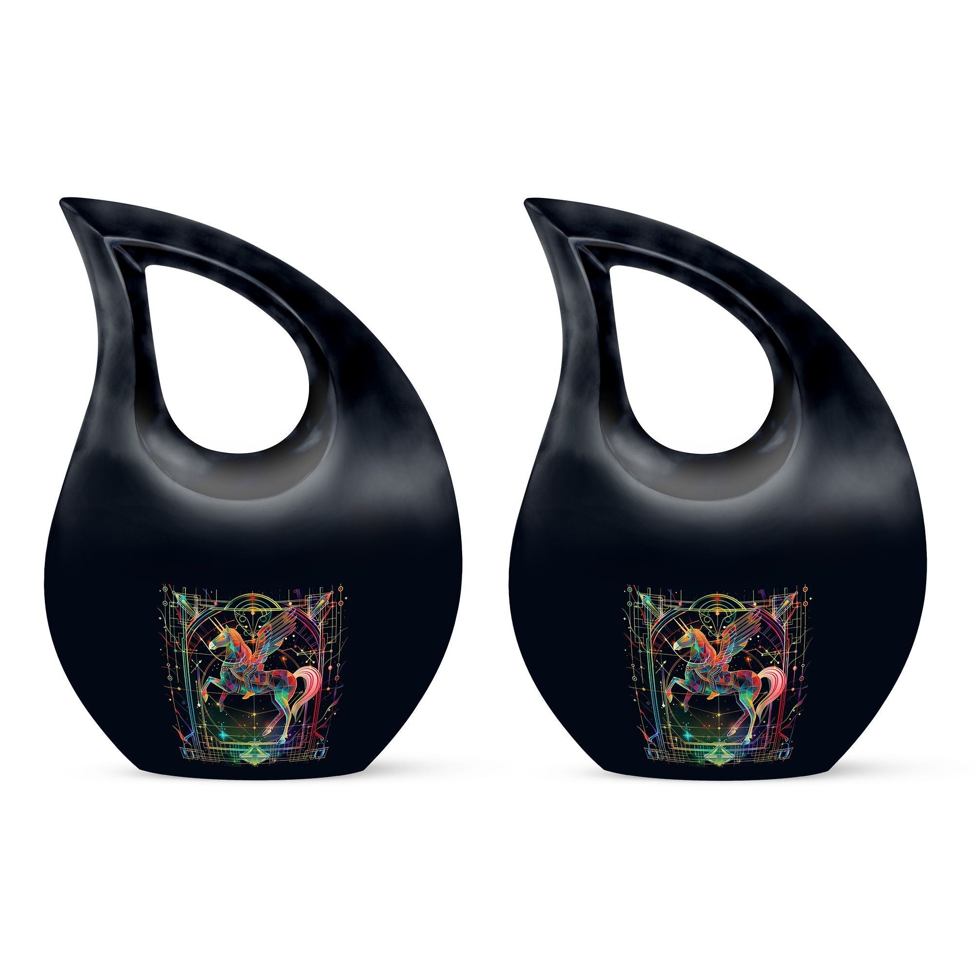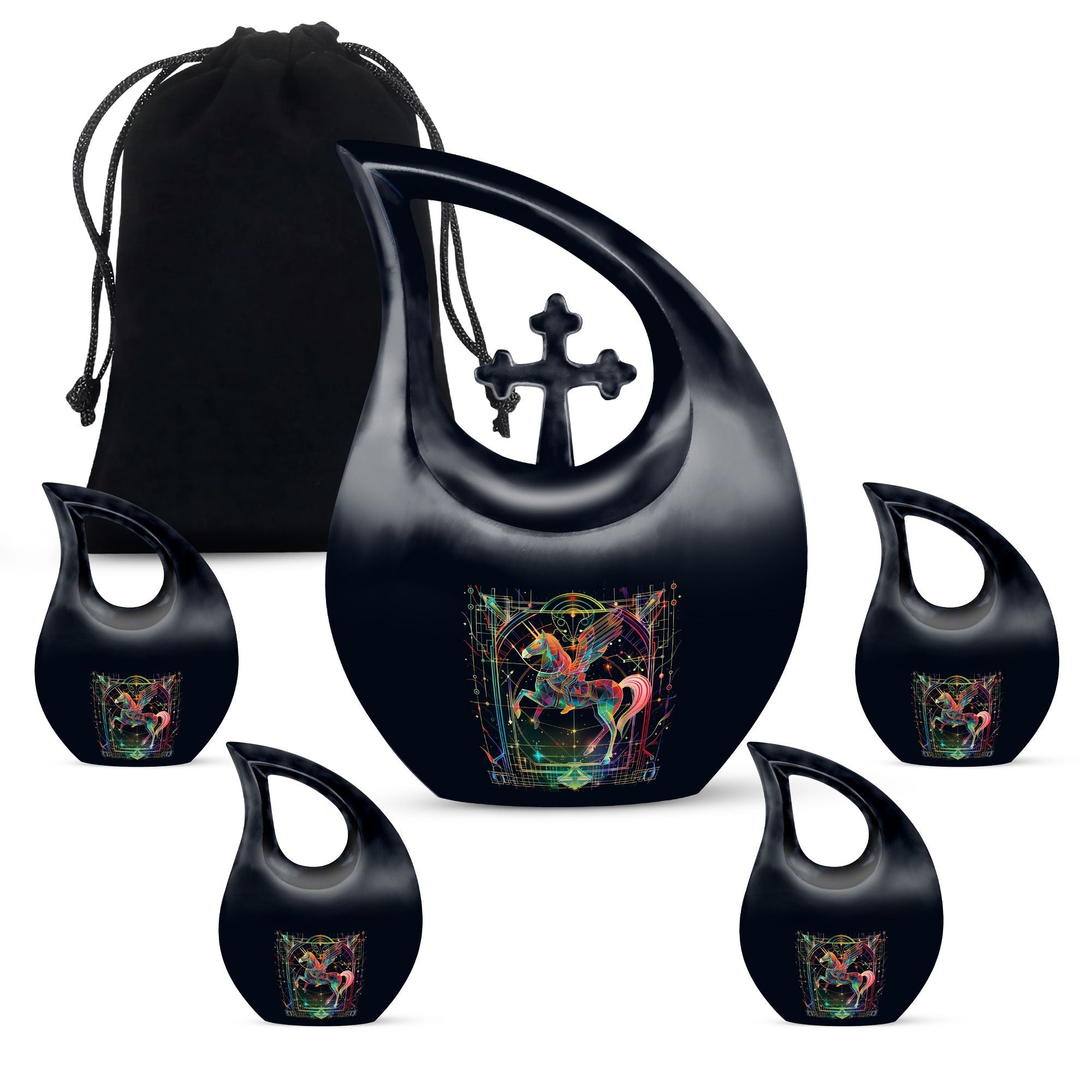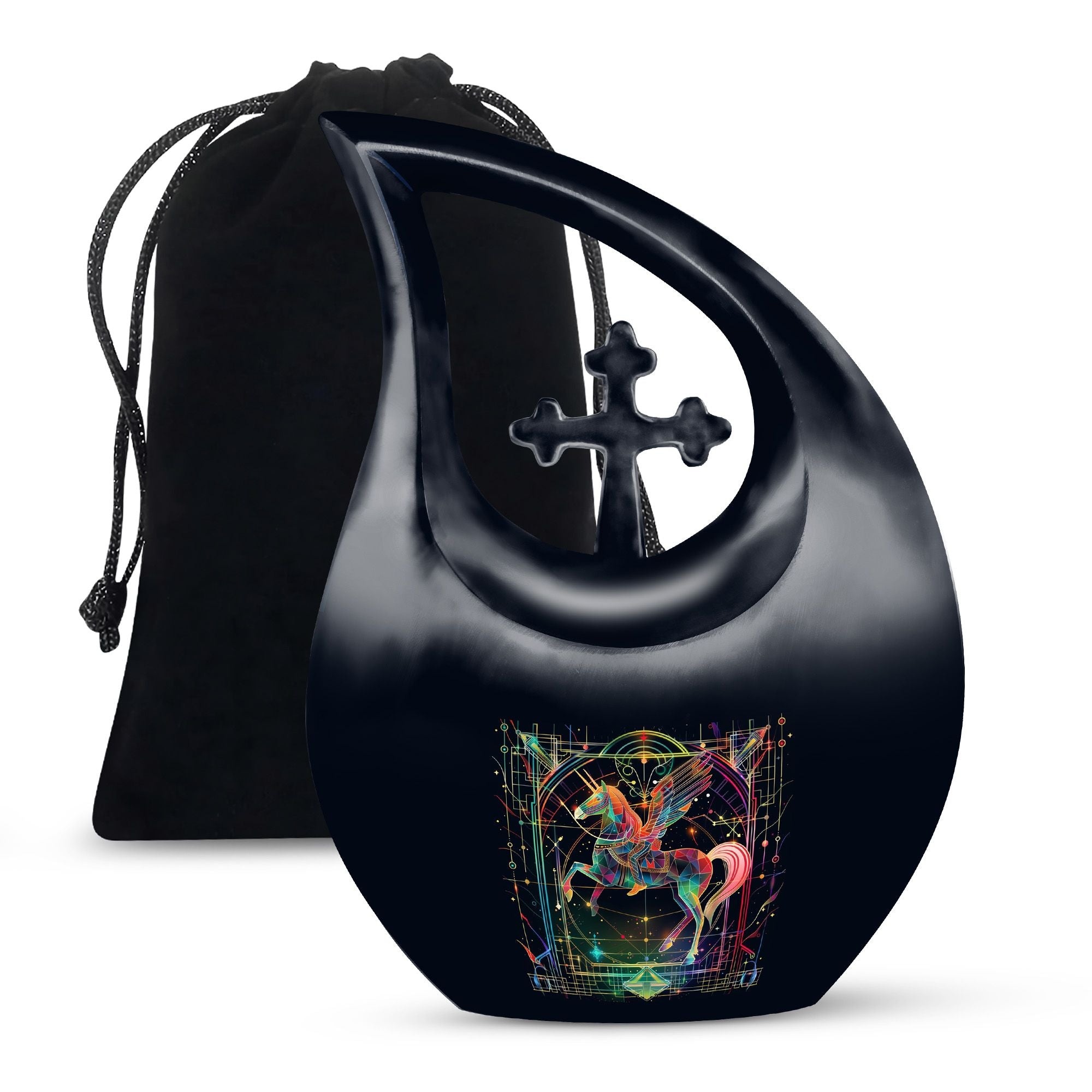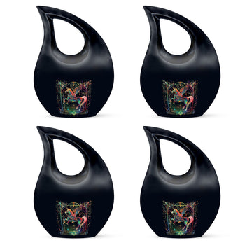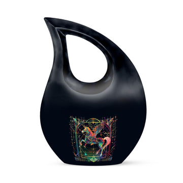 Introducing our 'Cross Drop' Zodiac Urn, an exquisite piece representing the ethereal realm of zodiacal connections. Exclusively configuration for adults, these spectacular large urns offer an impressive 200-cubic inch capacity. Our meticulously crafted urns, weighing 3.3 pounds and standing 10 inches tall, are innovatively made from durable and timeless aluminium. This Zodiac Urn ranges beyond commonality, exuding an aura of particularity and speciality. The accompanying velvet pouch allows for respectful containment and preservation of ashes. Adding a personal touch to your memorial ceremony supplies, you can customize these urns with engraved names, creating a lasting sentiment. Help celebrate and remember the life of your loved one with this unique, affordable cremation alternative. Ideal for those searching for 'Urn for Ashes for Adults' or 'Memorial Urns', this product underscores your intent in the most resplendent way.