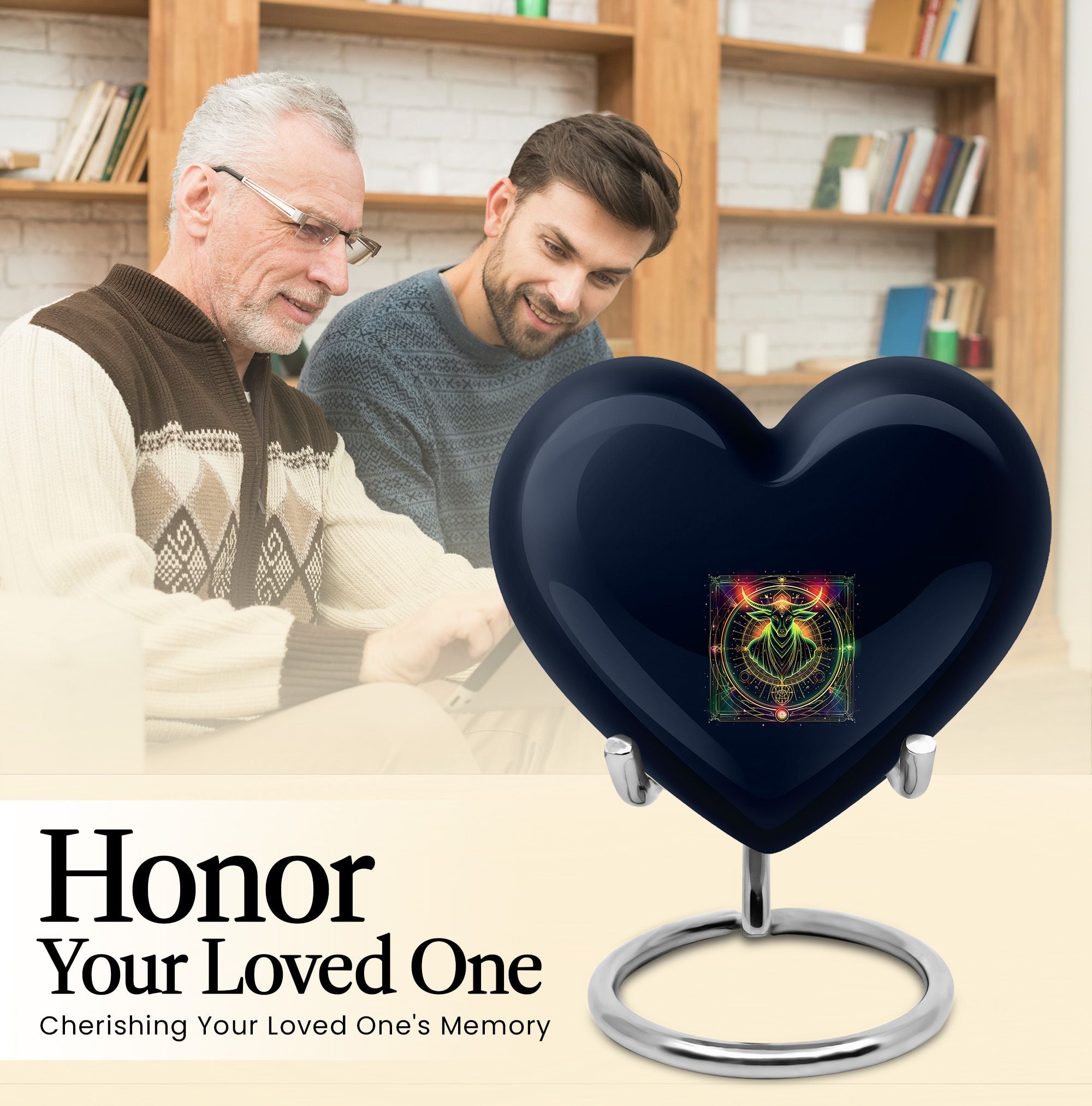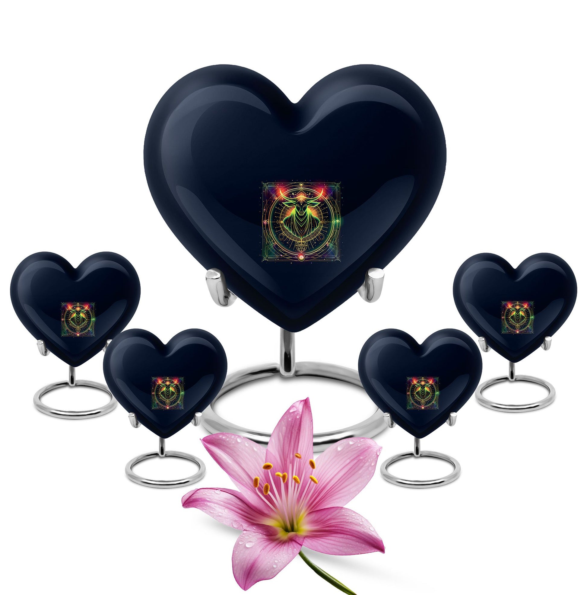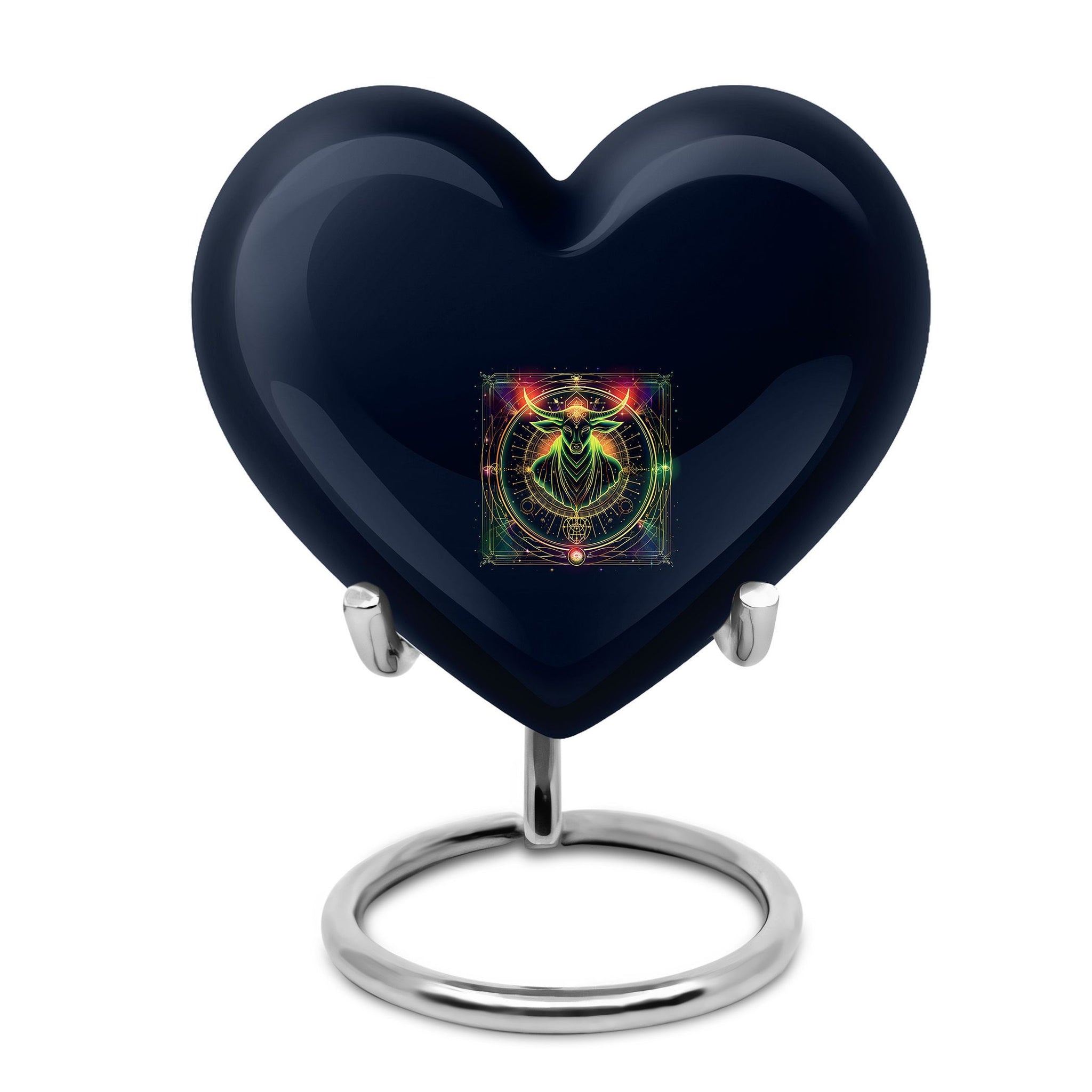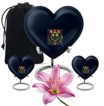 Personalize your eternal tribute with our 10-inch Zodiac Urn, embodying the celestial majesty of the cosmos. Crafted meticulously from sublime aluminium, this large urn carries a weight of 3.3 pounds. Created with care and finesse, our funeral urns for burial offer a capacity of 200 cubic inches, catered to hold the treasured remains of your loved one. The urn arrives with a velvet pouch for dignified containment of ashes, further complementing the charm of the urn. We offer the option to customize your urn by having names engraved onto it, adding an extra layer of sentimental homage. With our adult burial cremation urns, your endearing reminiscence would be preserved with the utmost dignity. Ideal for those seeking cremation urn for dad or urn human adult urns, these memorial urns connect with the touching sentiment with their heartfelt design. Please note, this design does not focus on the 'heart' theme. Make your tribute as unique as the stars with our Zodiac Urn.