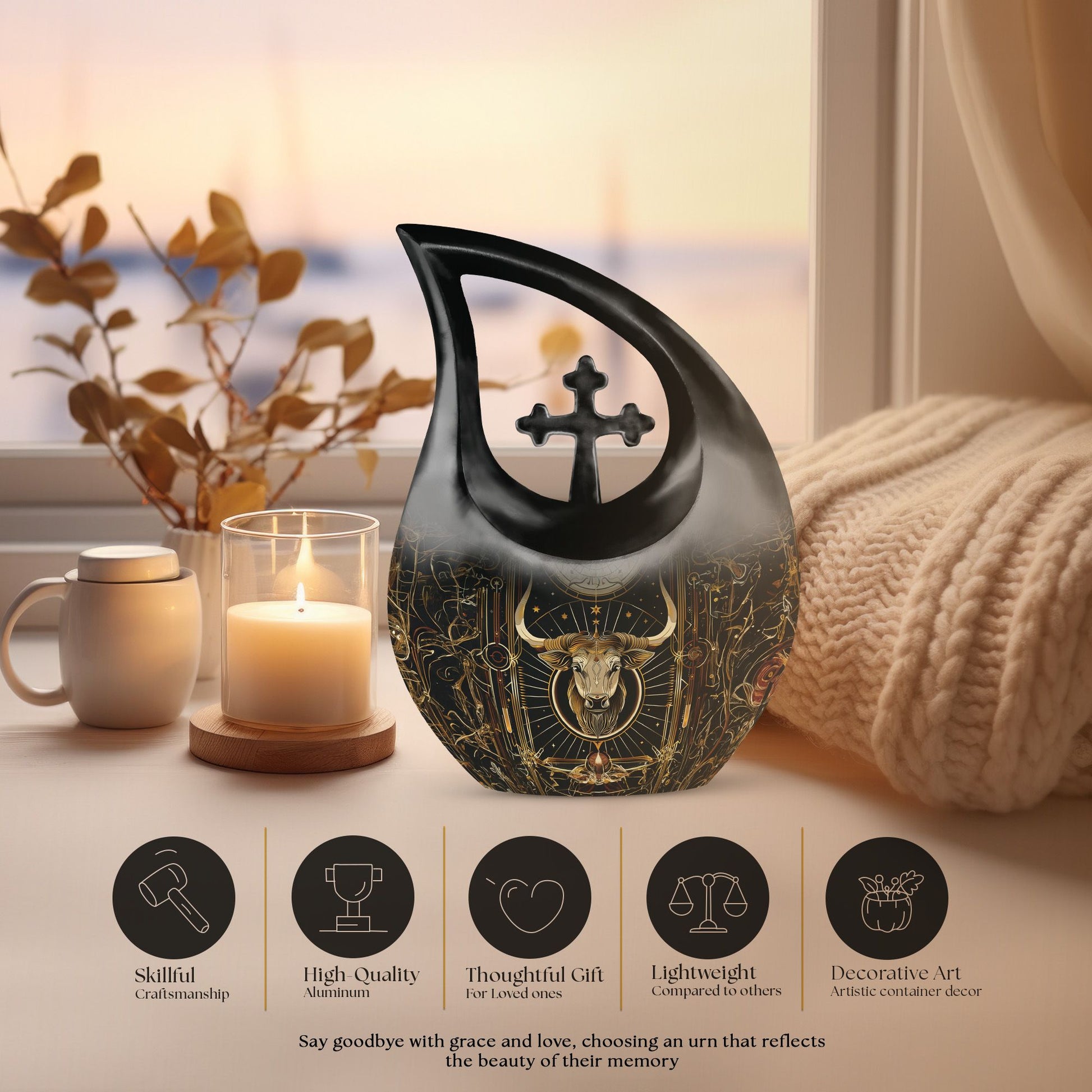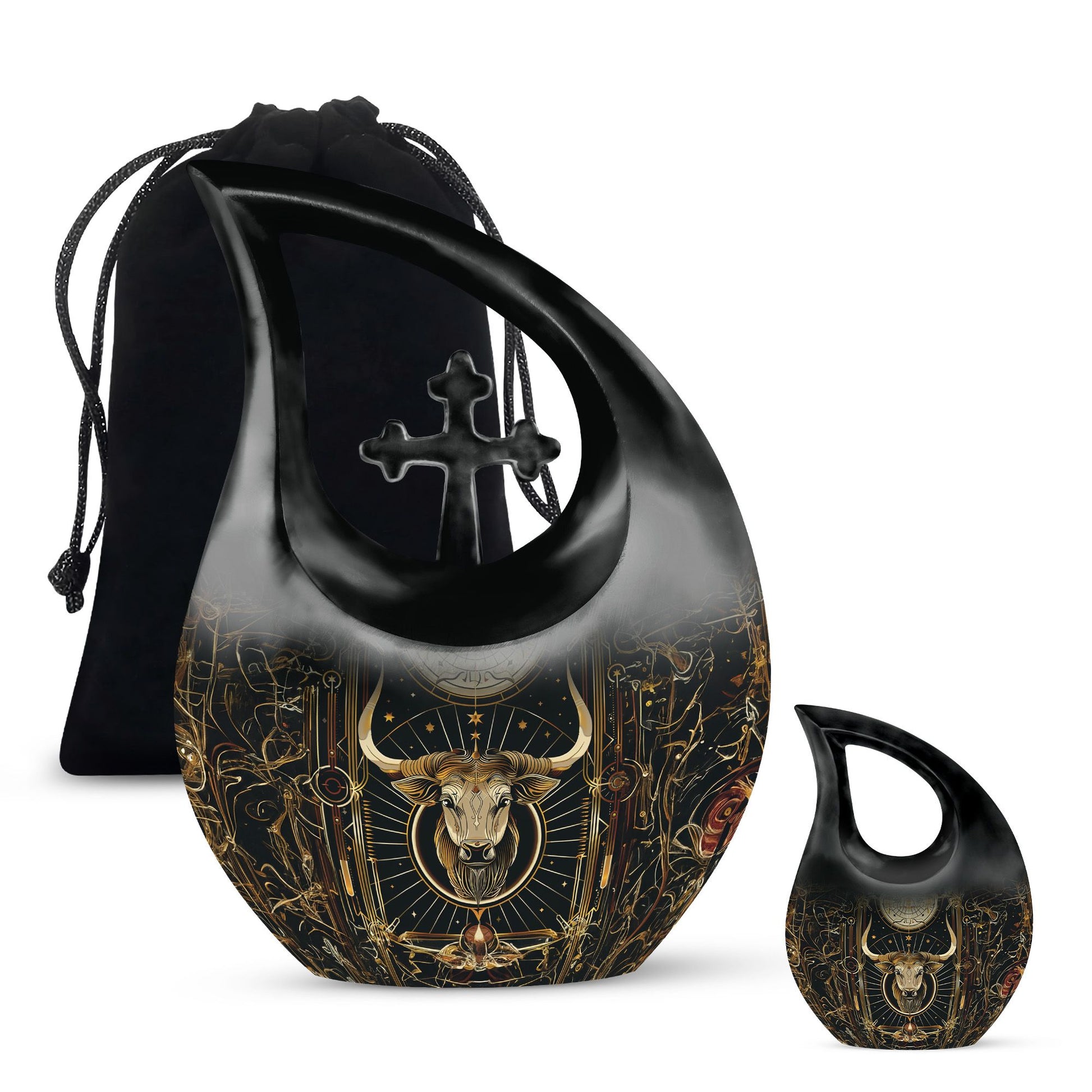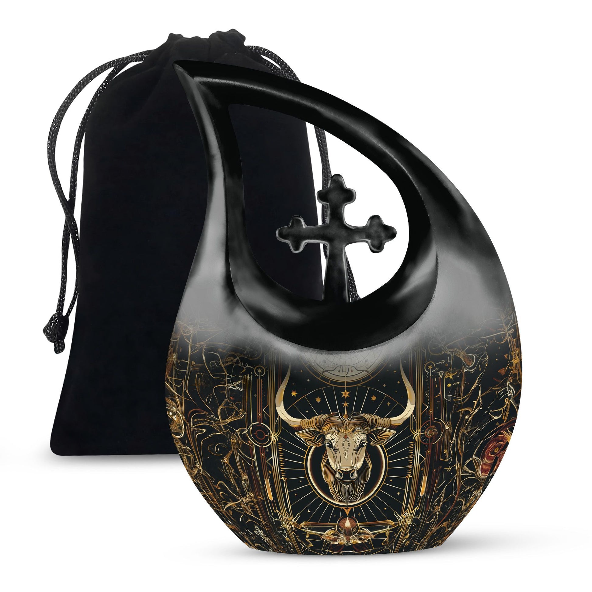 The Taurus Zodiac Urn for Ashes is a powerful and symbolic tribute designed to celebrate the grounded and loyal nature of those born under the Taurus sign. This stunning urn embodies the strength, patience, and love of your cherished one, serving as both a meaningful funeral urn adult and a beautiful reminder of their enduring spirit.
