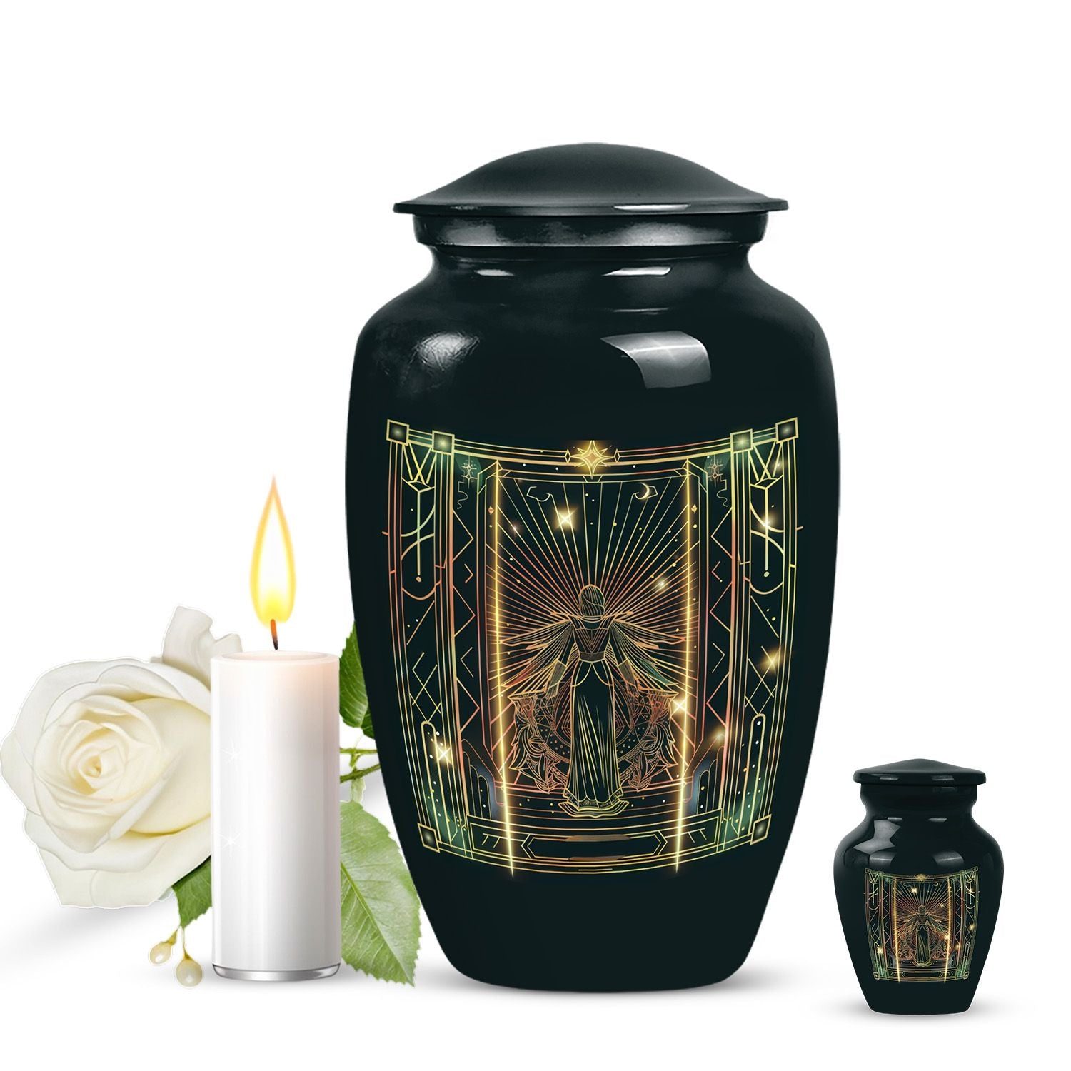 Dignified and timeless, this 10-inch large zodiac urn, designed in an abstract theme, evokes an air of serenity and reverence that is fitting for your loved one. Crafted from durable aluminium, this cremation urn for adults weighs 3.3 pounds and has an impressive capacity of 200 cubic inches, comfortably accommodating human ashes. This adult urn is accompanied by a velvet pouch, ensuring containment of ashes in the most respectful manner possible. We understand the importance of personal touches during such sensitive times, so we offer the ability to personalize this unique urn with engraved names. The classic design is not just visually soothing, but also resonates with the gravity of the moment, making it a perfect choice for memorial urns. Uniquely designed and carefully crafted, it stands as a respectful tribute to your beloved ones. Please note that this urn is suitable for adult ashes and is appropriate for burial ceremonies as well.