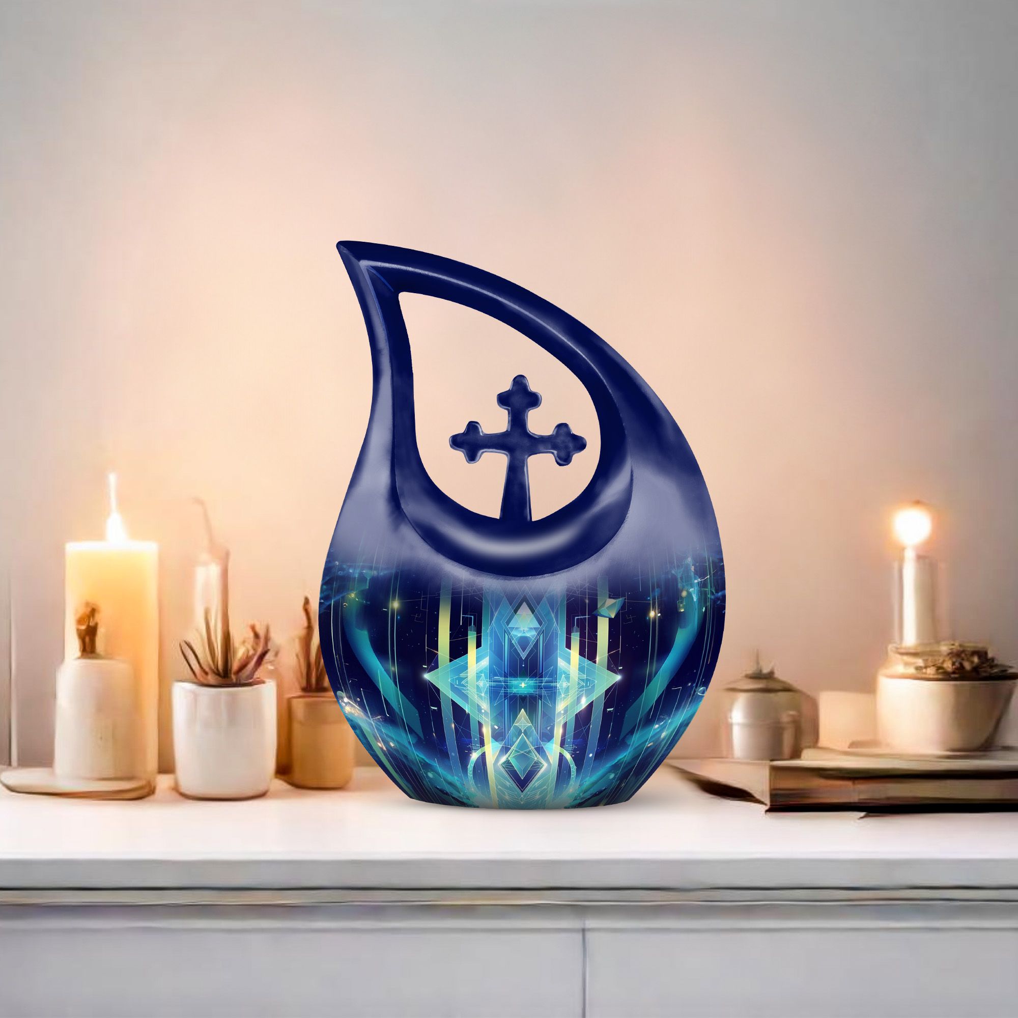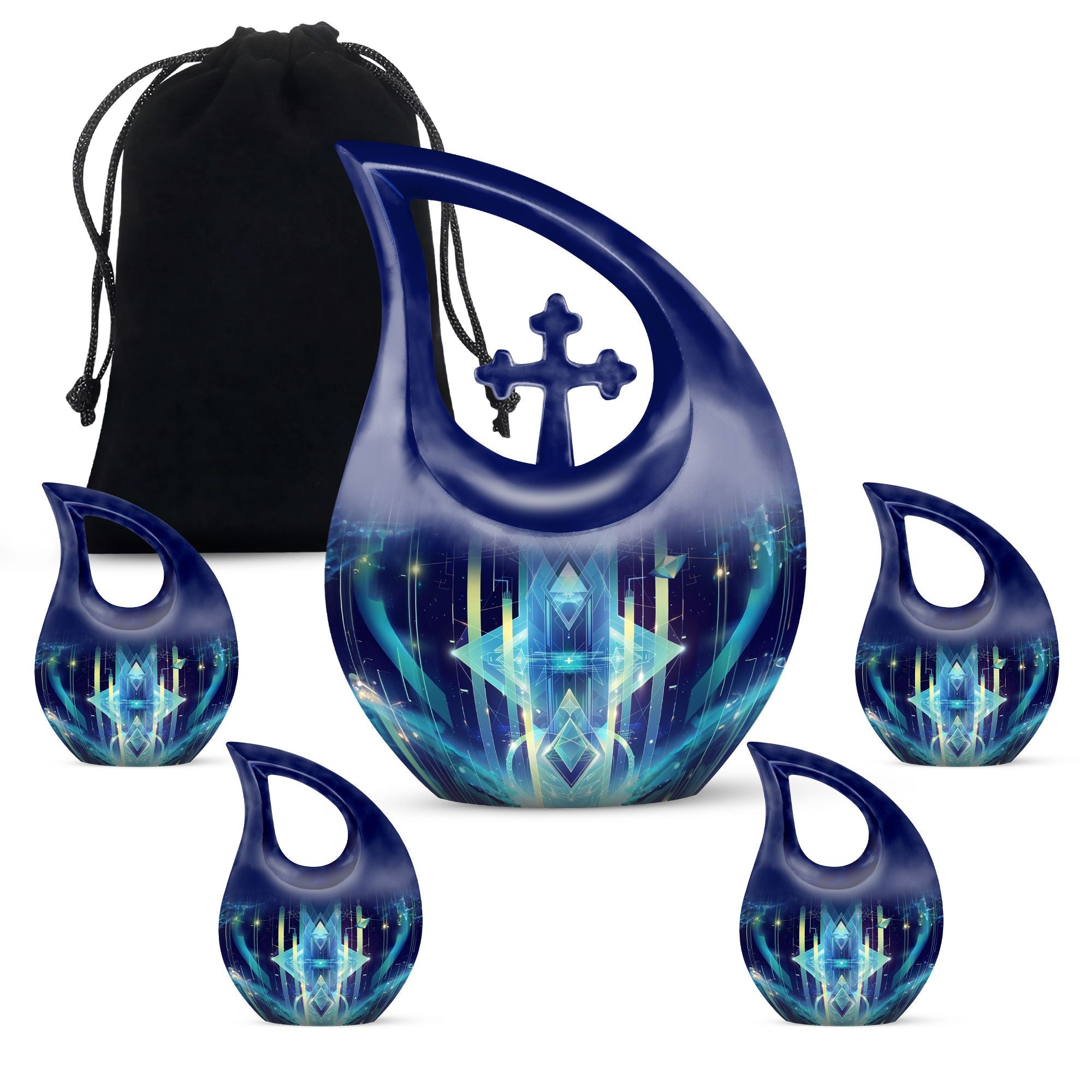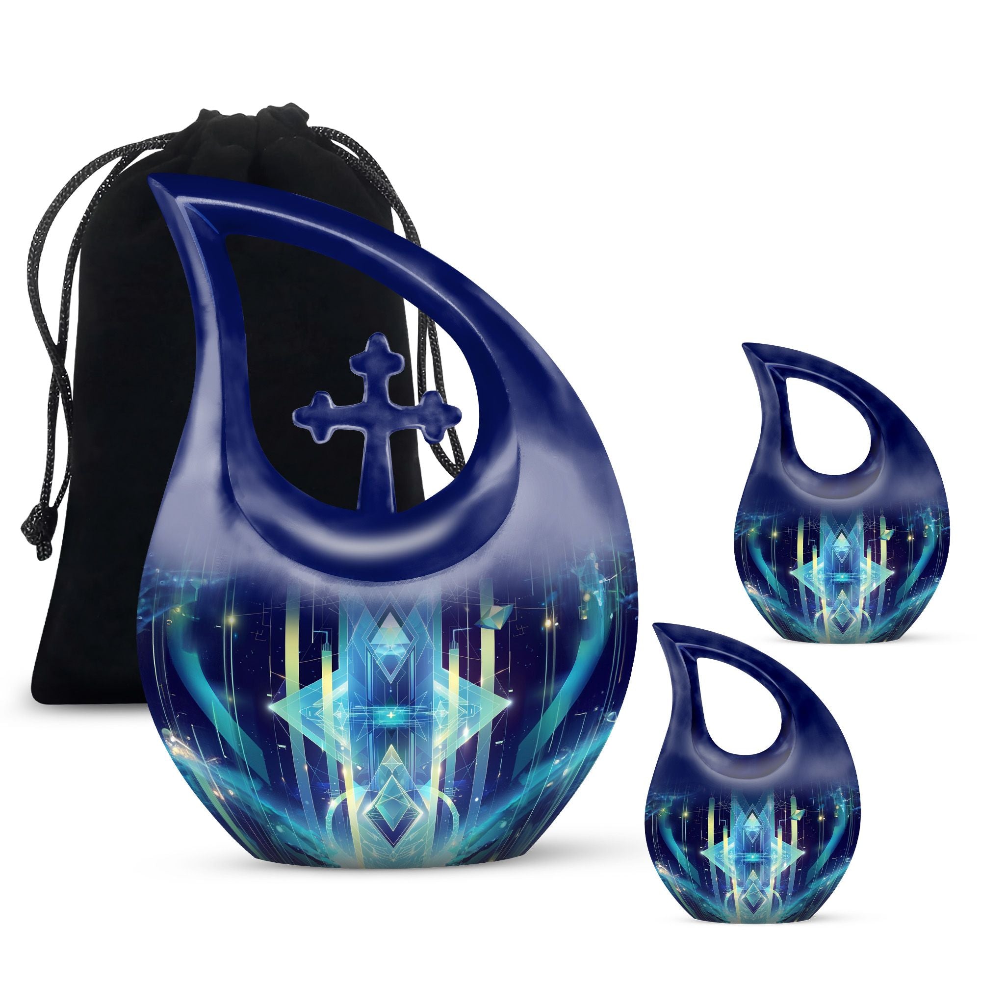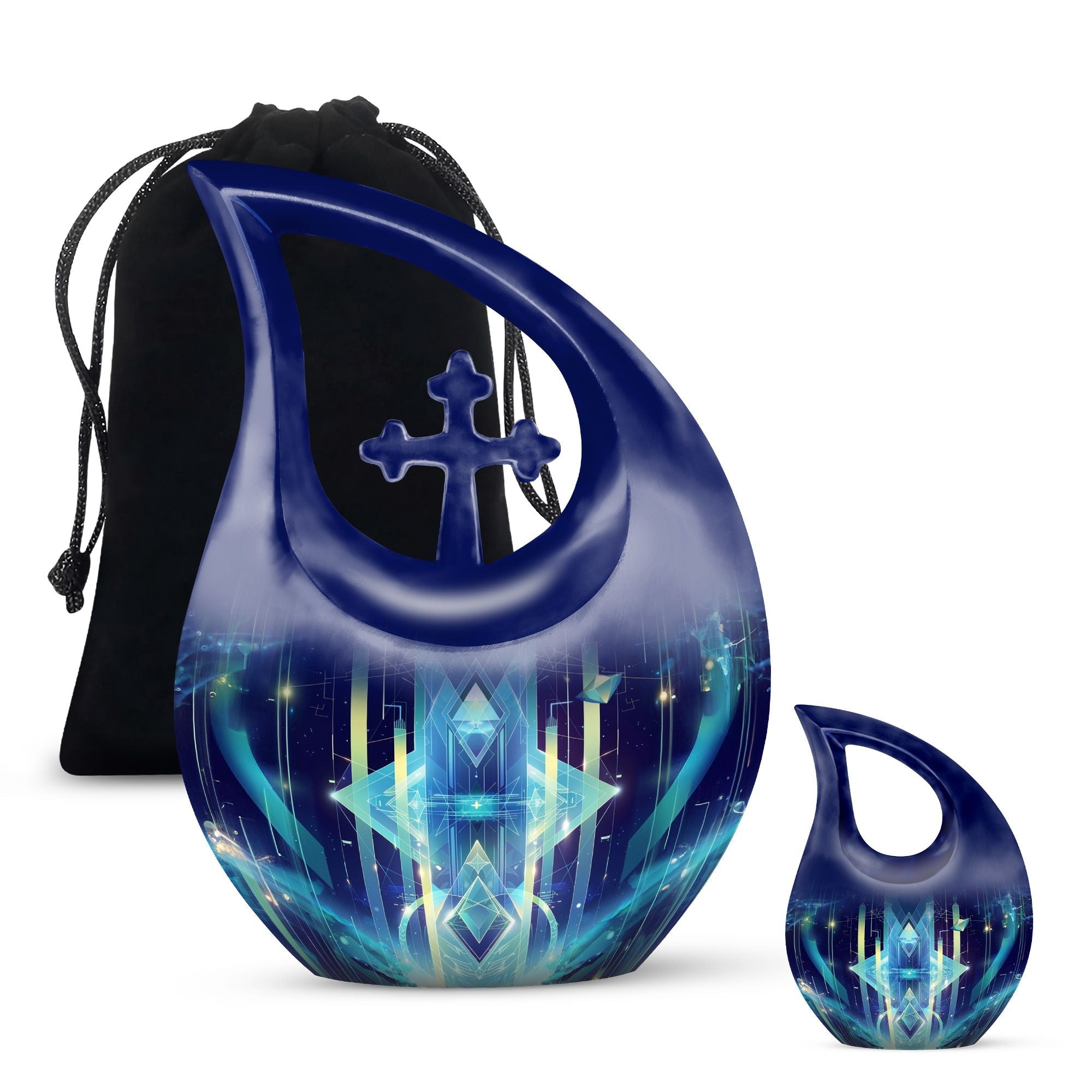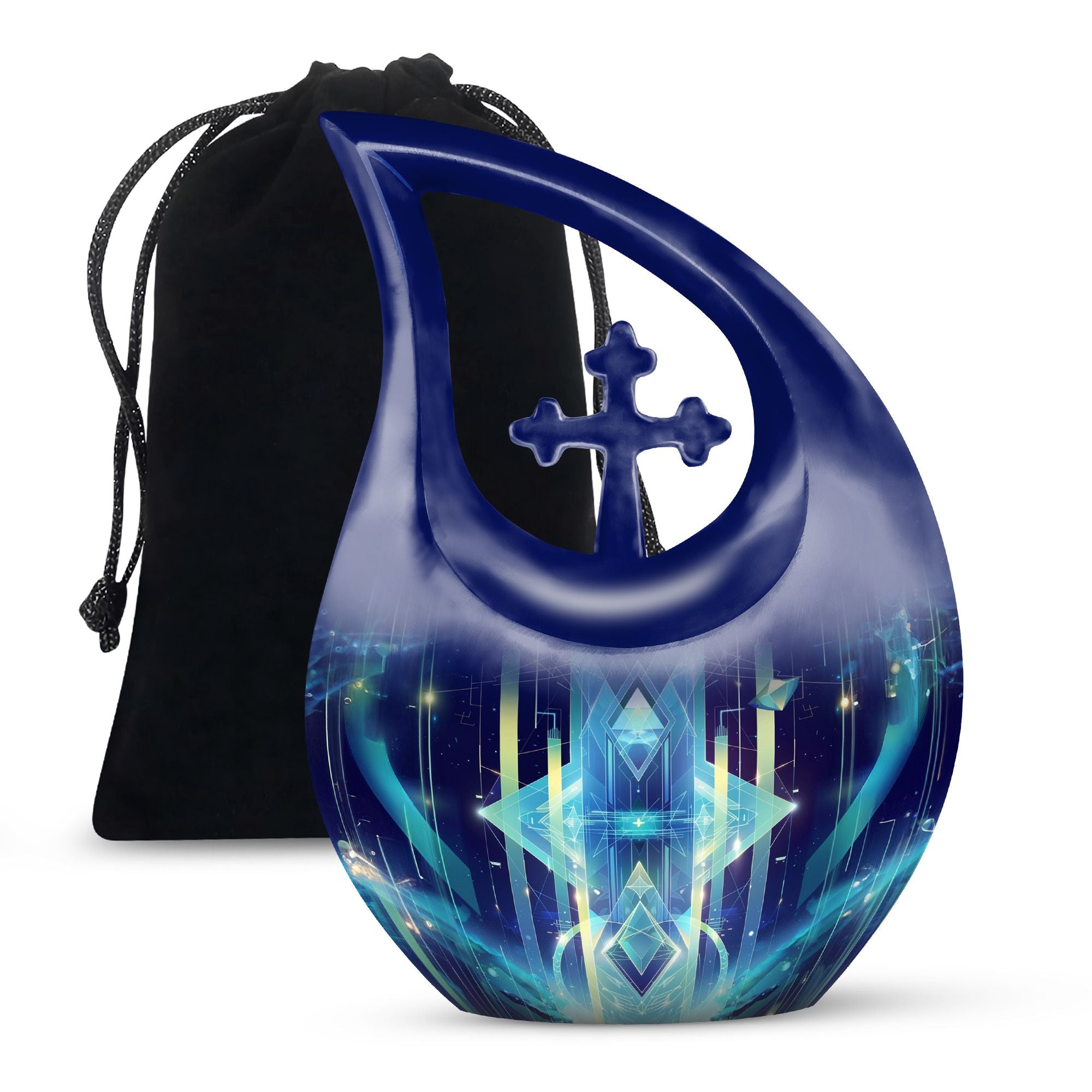 Cherish the memory of your loved ones with our meticulously crafted Zodiac Urn. This 10-inch Extra Large Urn, designed to hold a capacity of 200 cubic inches, expresses an artistic interpretation of your affection and respect in a most profound way. Rendered in aluminium, it is weighty at 3.3 pounds, providing a sturdy and reassuring home for your beloved's terminal remnants. The urn carries the unique 'Cross Drop' motif and is themed around the zodiac, adding a touch of cosmic reverence. Personalize it with engraved names to make it truly representational. Each urn arrives with a velvet pouch for secure containment of ashes. Whether you search online for 'memorial urns', 'Memorial Urns For Human Ashes', 'Customized Urns For Ashes For Adults', 'Personal Urns', or 'Unique Urns For Dad', you'll find that our Zodiac Urn is a piece of commemorating art that stands in its league. Exceptionally original and uncommon, it is built to protect memories while adding a celestial touch to your memorial ceremony supplies.