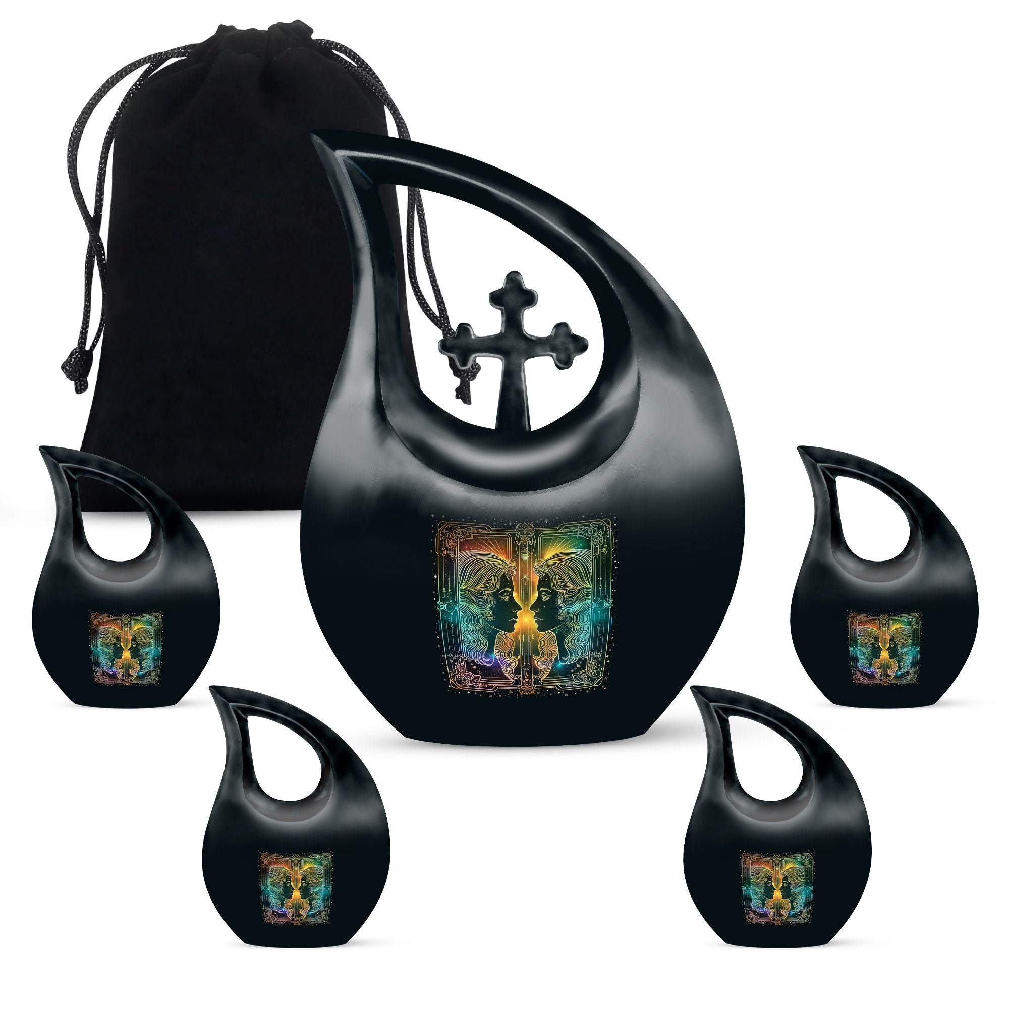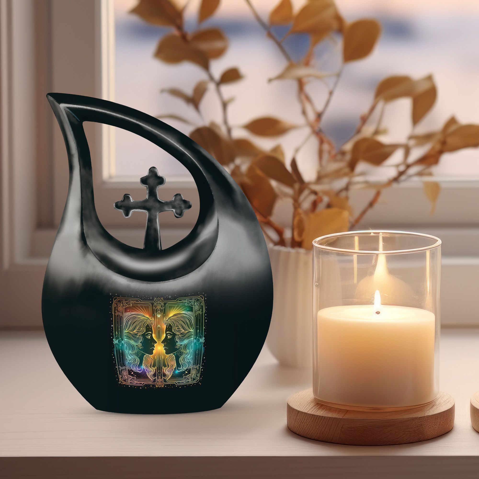 Immerse in commemoration with our impeccable, Zodiac-themed Cross Drop urn. Crafted from high-quality aluminium, this 10-inch large urn is meticulously designed for cherished loved ones. Its 200 cubic inch capacity can gracefully hold the ashes, safely enclosed in the complimentary velvet pouch provided. The 3.3-pound urn stands firm, marking an enduring tribute. Add a personal touch with our customization options - engrave your loved one's names onto the urn, making your memento even more special. The urn's Cross Drop theme reflects a serene space, resonating with those seeking solace. Our urn resonates with keywords such as 'Zodiac Urn', 'Cremation Containers', 'Best Urns For Ashes', 'Personalized Urns For Ashes', 'Burial Urns', and 'Cremation Boxes', establishing it as an optimal choice for memorial urns. Venture into an unforgettable homage to your loved ones with our honorary urn.